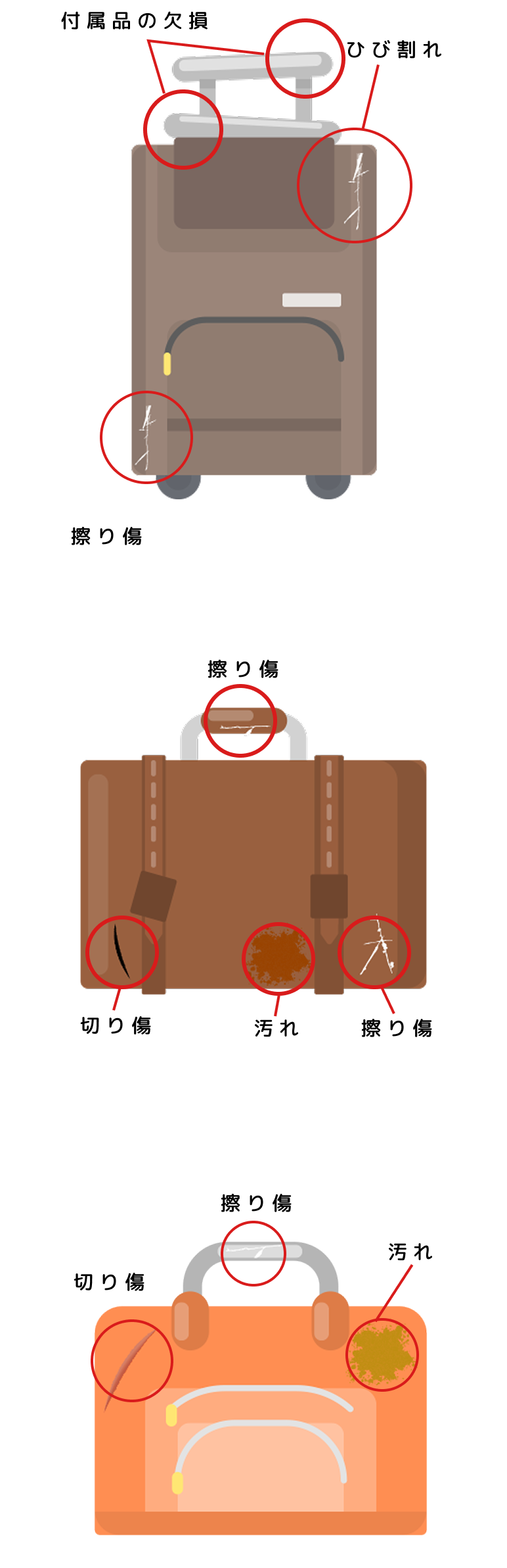 軽微な破損(擦り傷・切り傷・へこみ・汚れ等)